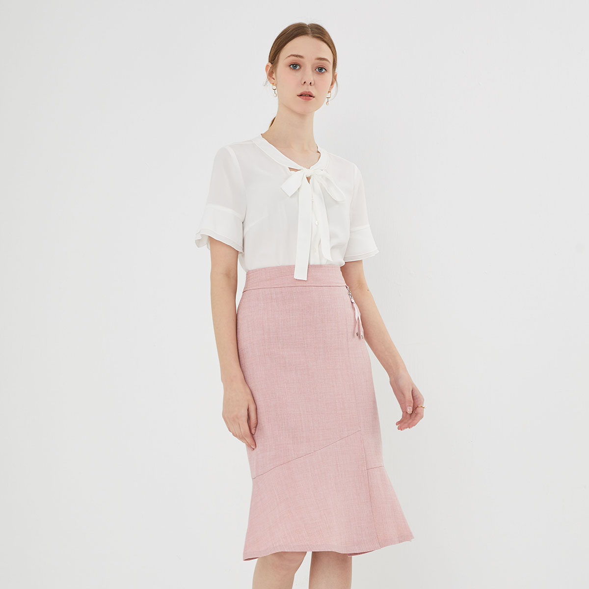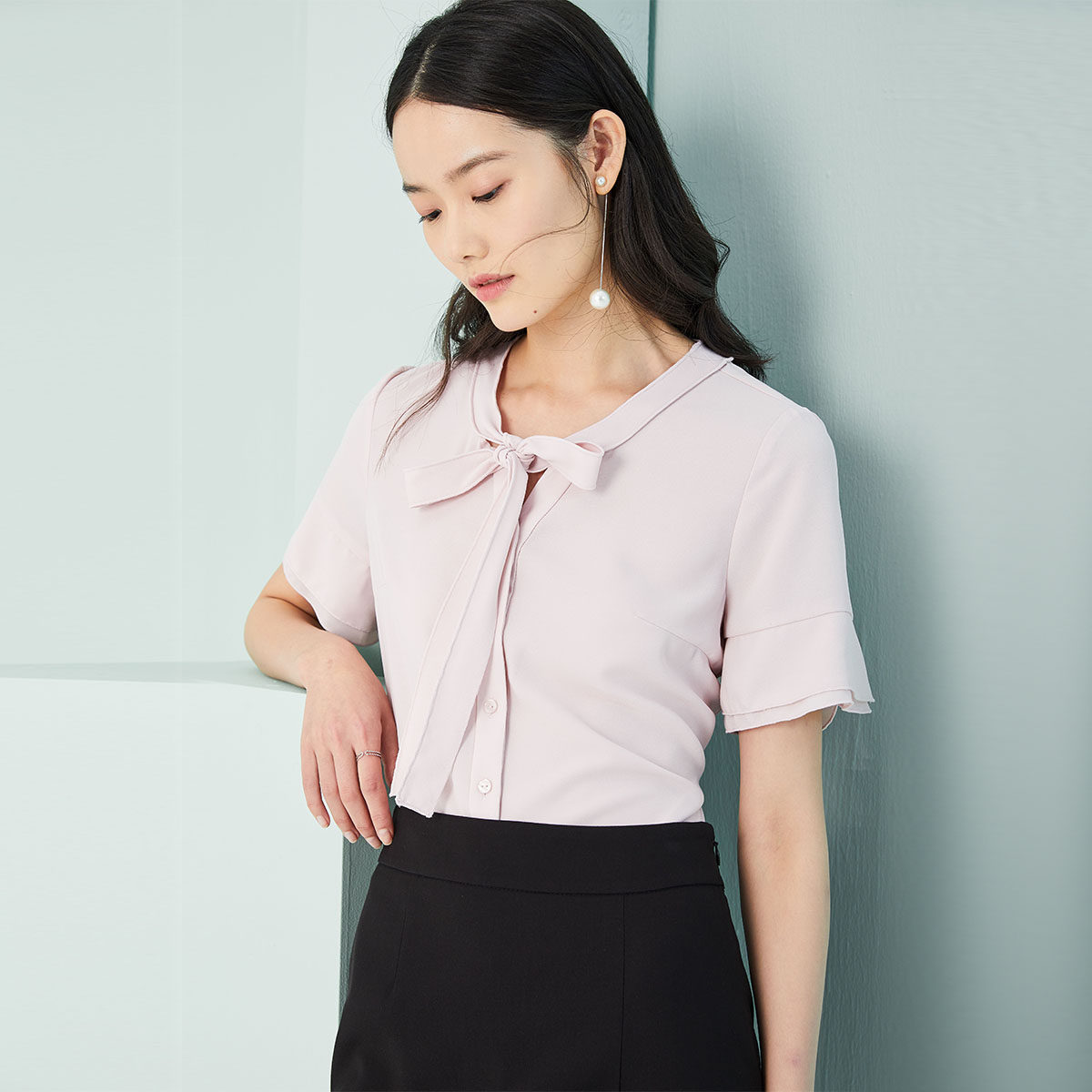 PRICH shirt small V-neck bow double-layer ruffle sleeve design fashion retro Hong Kong-style shirt top women