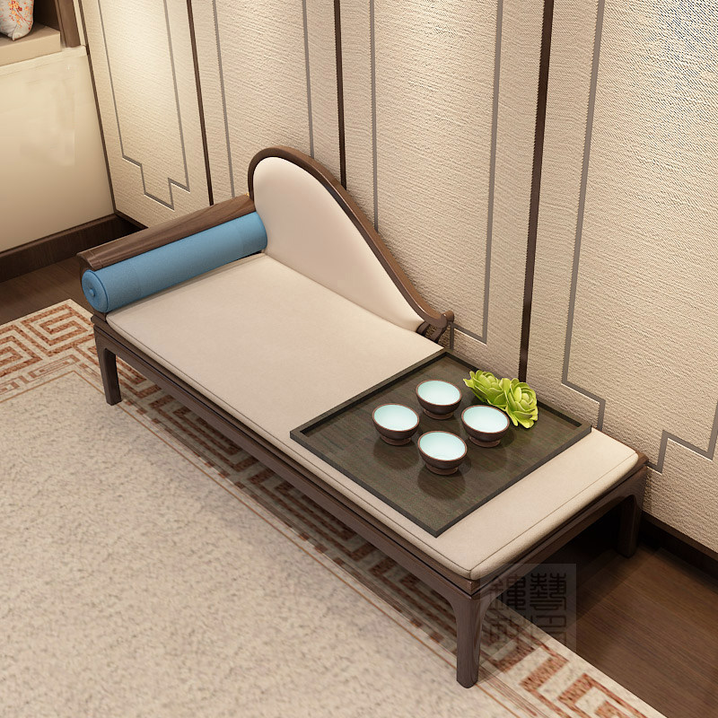 Chaise lounge new Chinese style solid wood sofa reclining chair beauty couch homestay hotel bedroom bed end stool designer furniture