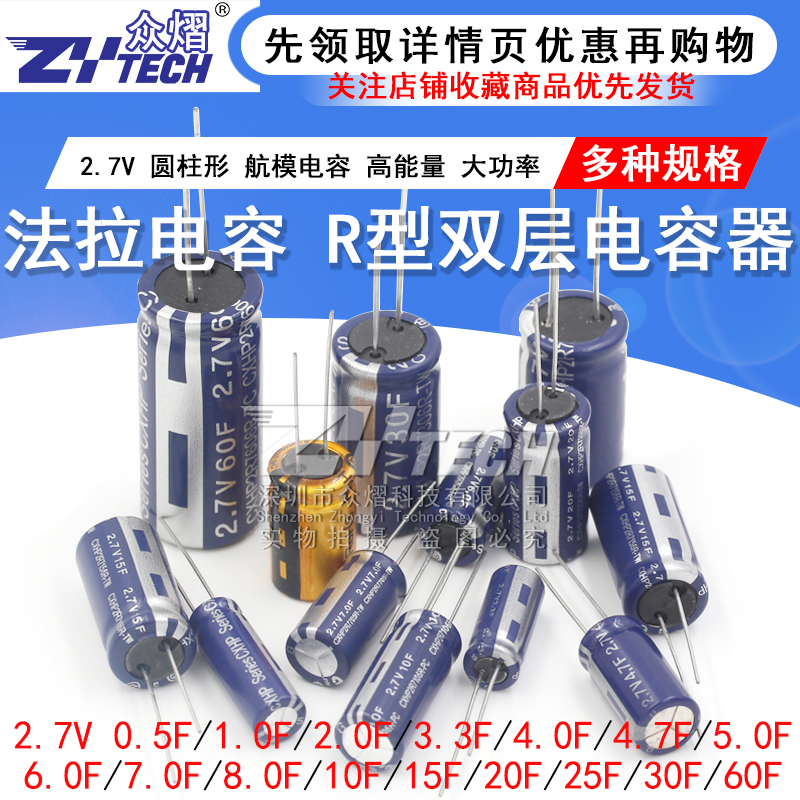 Farad Capacitor 2 7V 1 2 3 3 4 7 5 6 7 8 10 15 25 30F R Type Double Layer Capacitor
