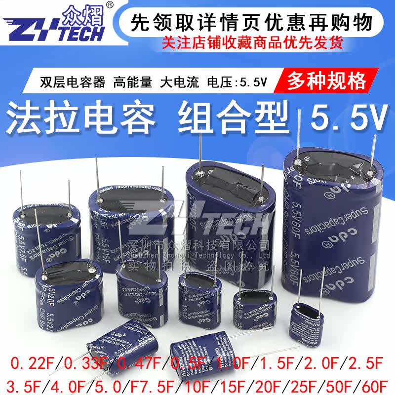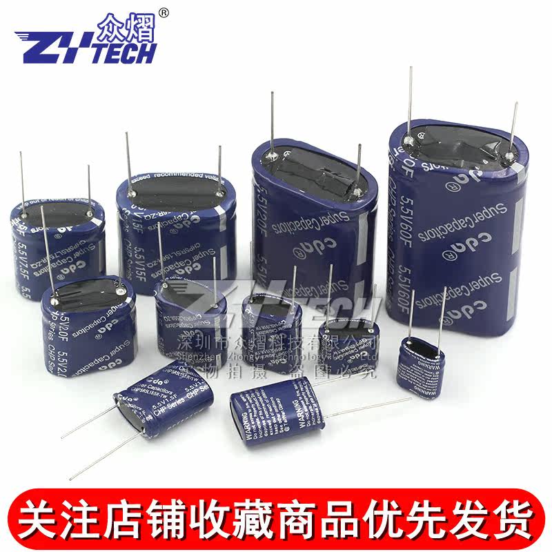 5.5V 0.5F 16*8*14MM 11.8mm Pitch 5.5V 1.0F 17*8*14MM 11.8mm Pitch 5.5V 2.0F 15*13*25MM 18MM Pitch 5.5V 2.5F 21*10*22MM 16MM Pitch 5.5V
