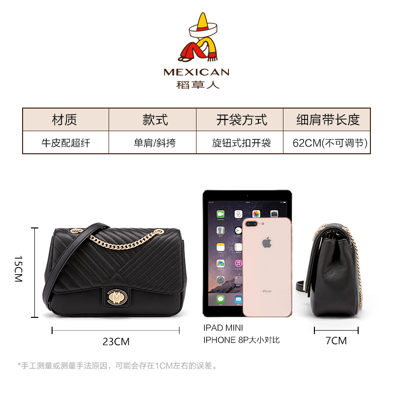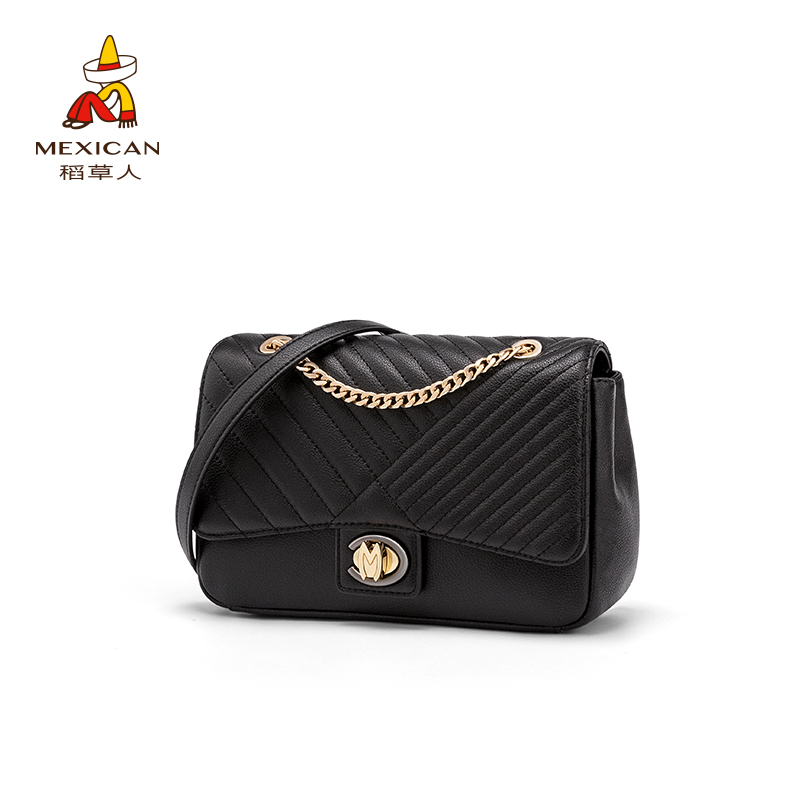 Rice Straw Man Girl Bag Genuine Leather Skew Satchel Bag Woman 2021 New advanced foreign pie chain bag Single shoulder small square bag tide