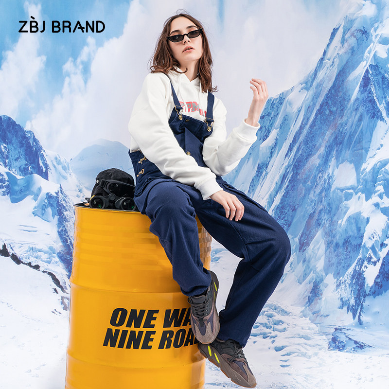 ZBJ tide brand baby bag pants Loose jumpsuit overalls wide leg pants Dad pants ins net red suspenders men and women
