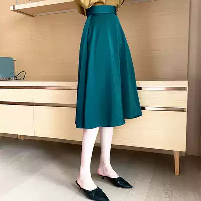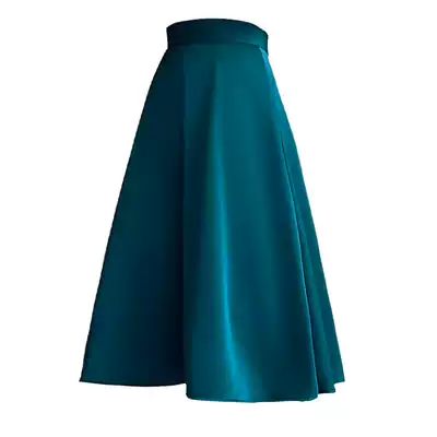 JACOOBS exclusive satin skirt a word high waisted harbor flavor wild peacock blue noble temperament