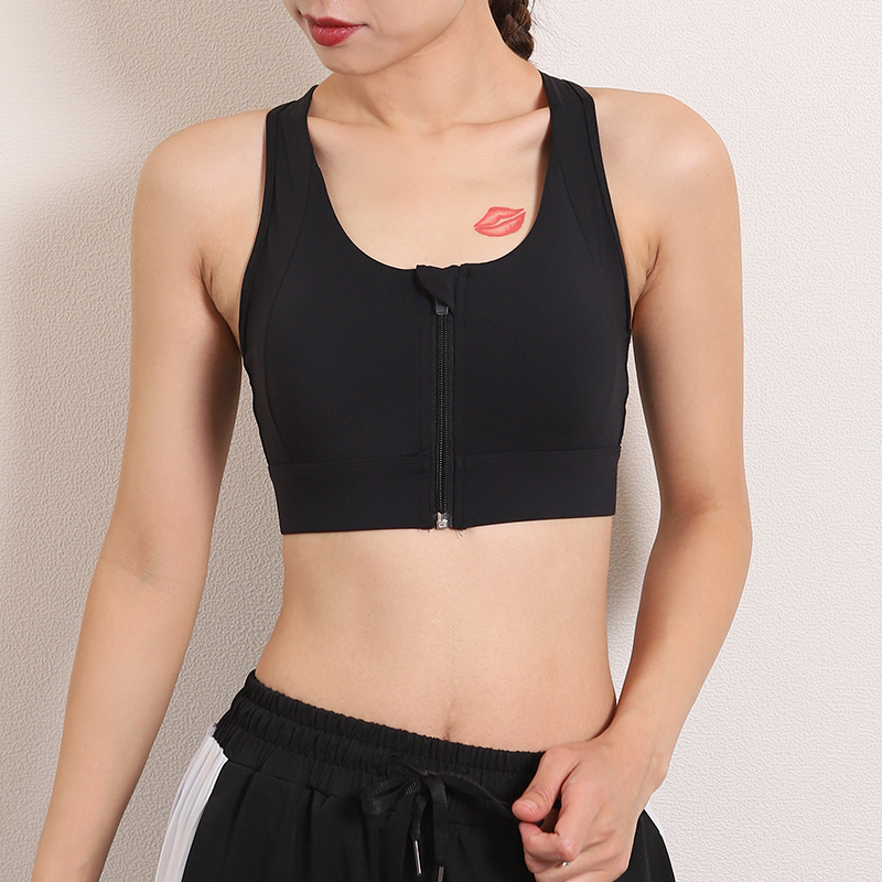 Nine-wheat one piece of front zipper sports bra shock-proof running gathering stereotyped fitness underwear yoga vest bra