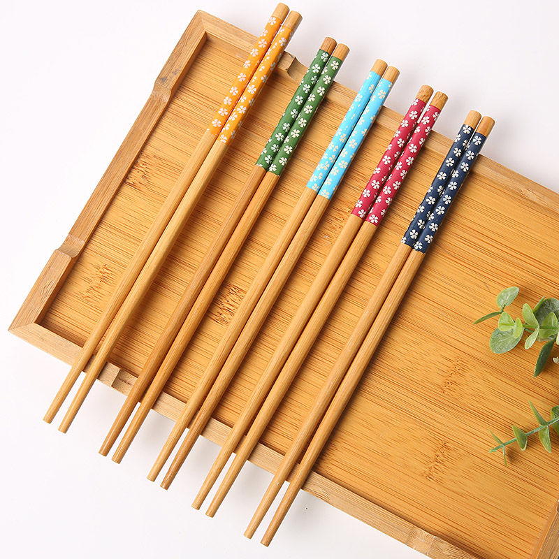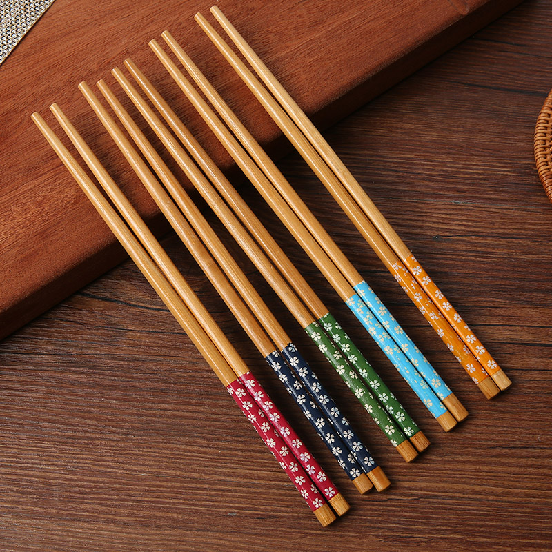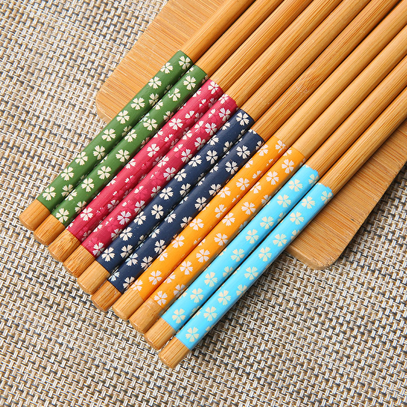 Natural Nan bamboo chopsticks creative 5 colors of floral 24cm net red home cherry blossom anti slip one person family heat resistant