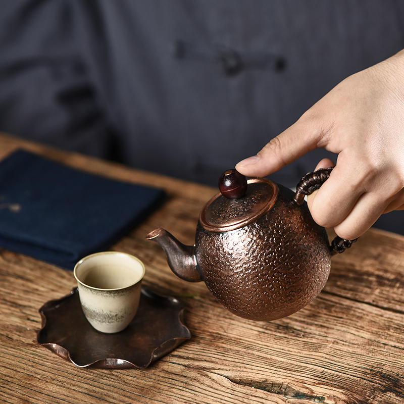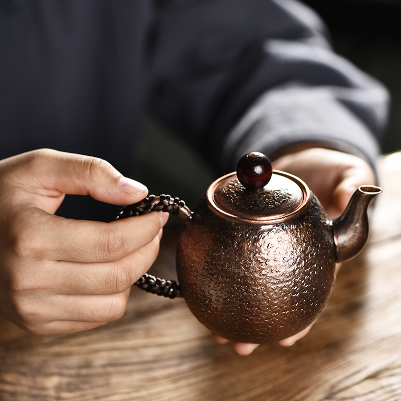Wind Valley Mountain House Day Style Pure Handmade Rock Textured Copper Teapot Thickened Retro Burning Water Pot Bronze Cooking Tea Instrumental Kongfu Tea Furniture