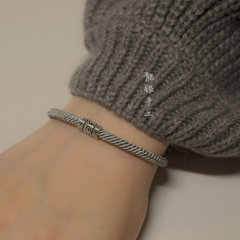 Six-character baoping sterling silver transfer beads zodiac year red rope bracelet male baoping hand-woven couple hand rope female