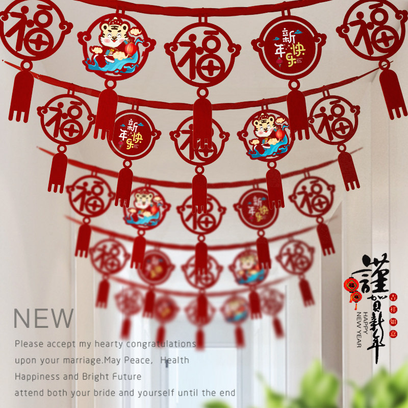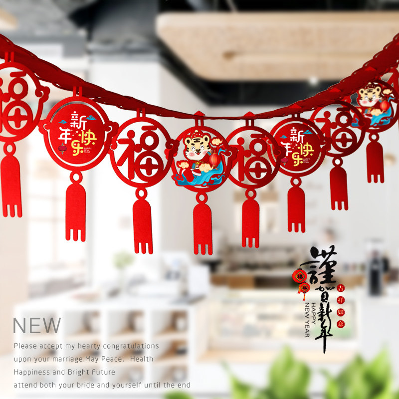 2022 Spring Festival tiger New Year's New Year's New Year's Day supplies arranged three-dimensional printed laflower hanging decoration Creative shop mall decoration