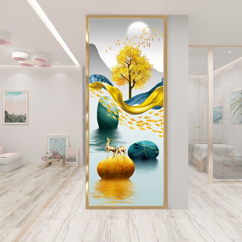 Modern Art Glass Decorative Aisle Screen Partition Background Wall Light Living Room Frosted Double-sided Light Transmission Chaeka Deer
