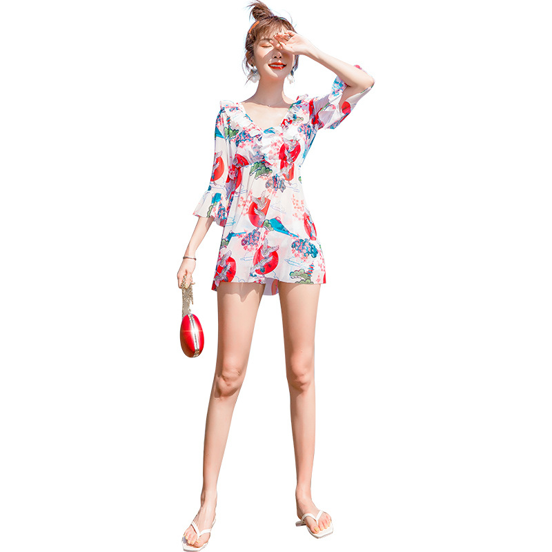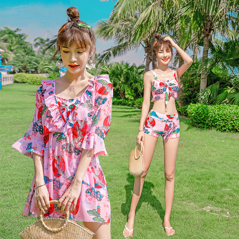 Swimsuit women's three-piece fairy fan two-piece conservative belly cover thin sexy bikini student spa bathing suit