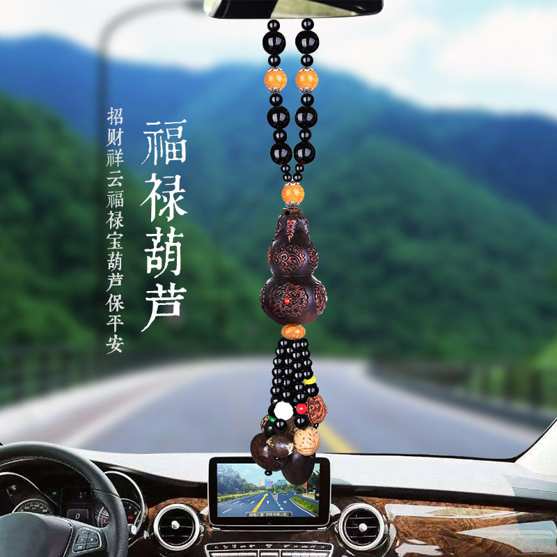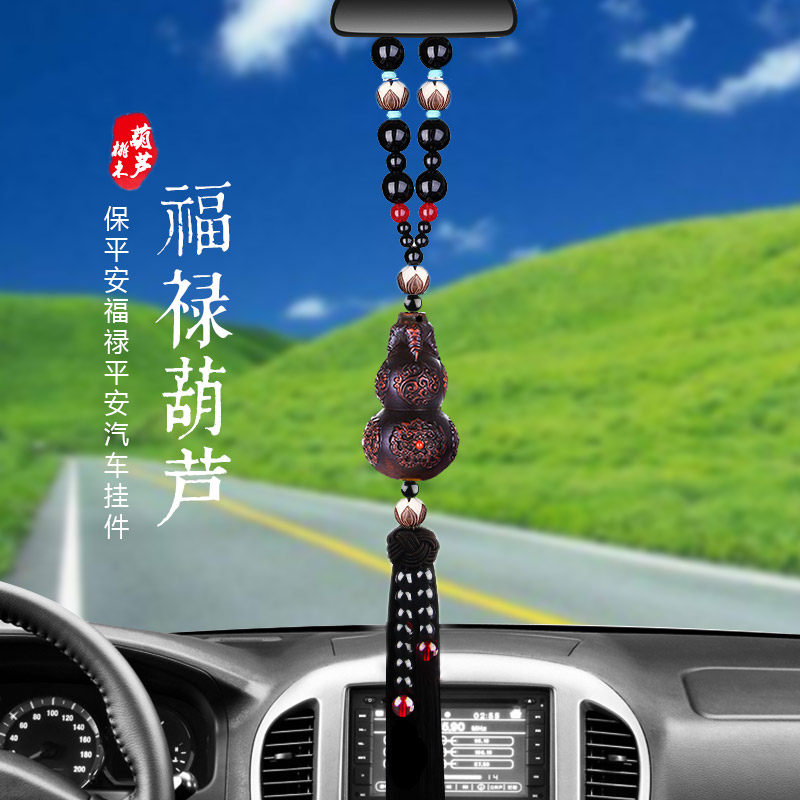Hoist car pendant peach wood car interior pendant in and out safety character decoration net red front car car rearview mirror hanging