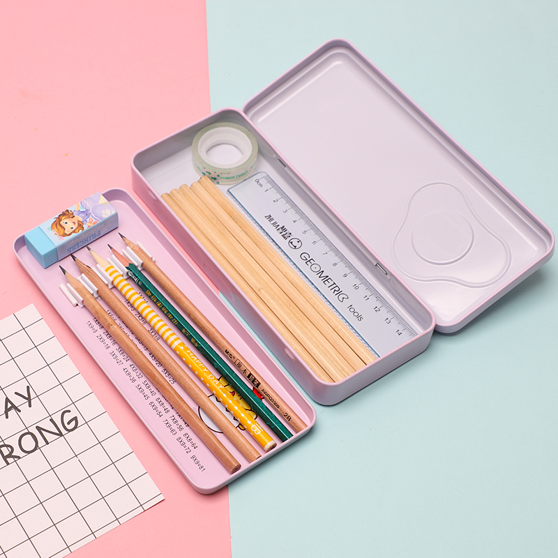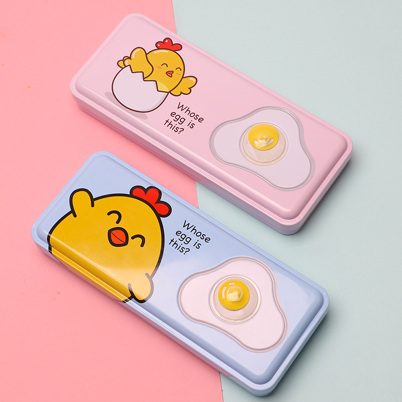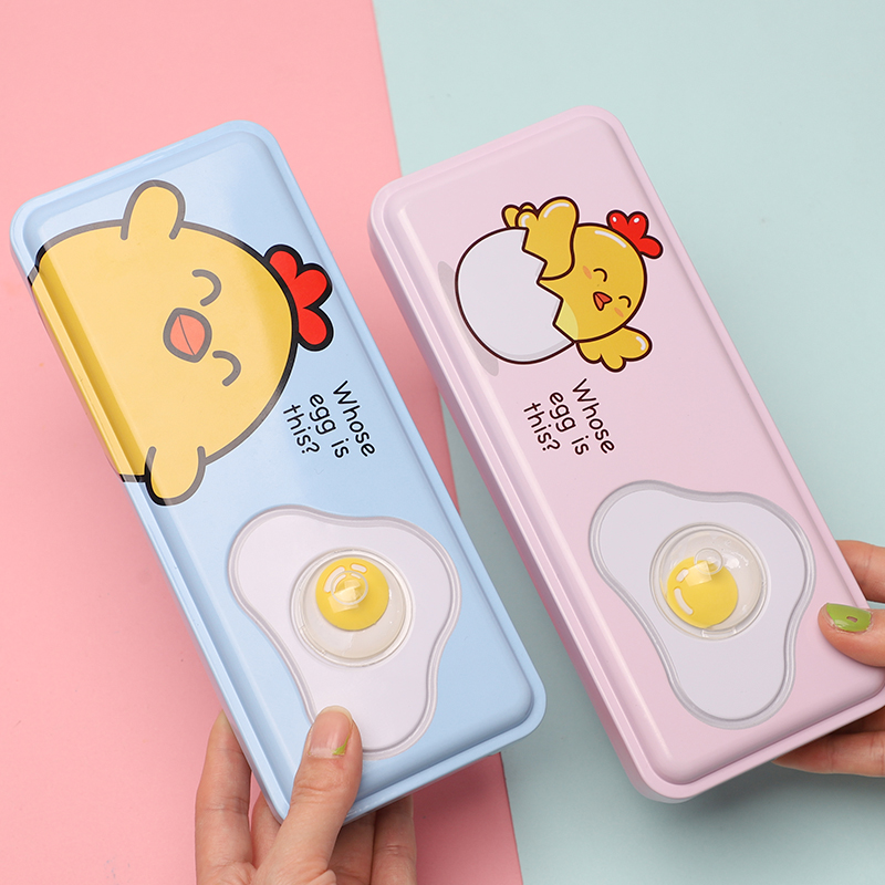 Iron pencil-case with pencil clip Primary school girls double pencil-case Children creative cartoon pencil-case