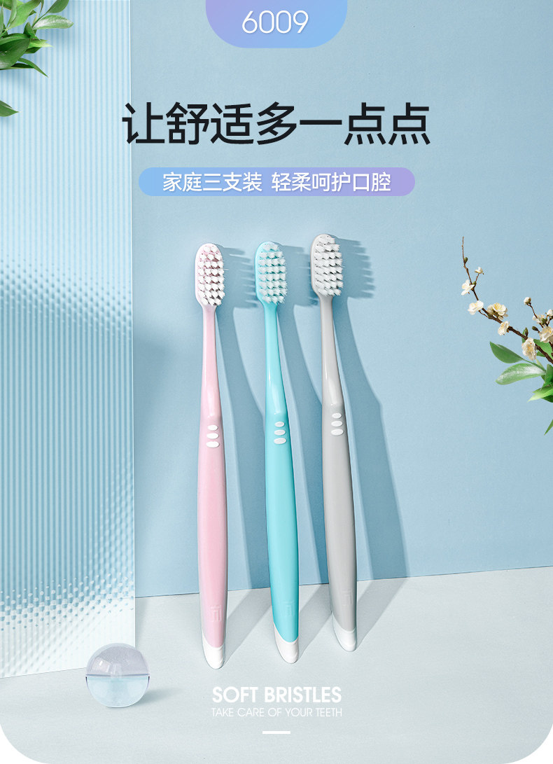 Namei minimal life fiber soft toothbrush three packs 6009 elastic brush gum V brush head flexible