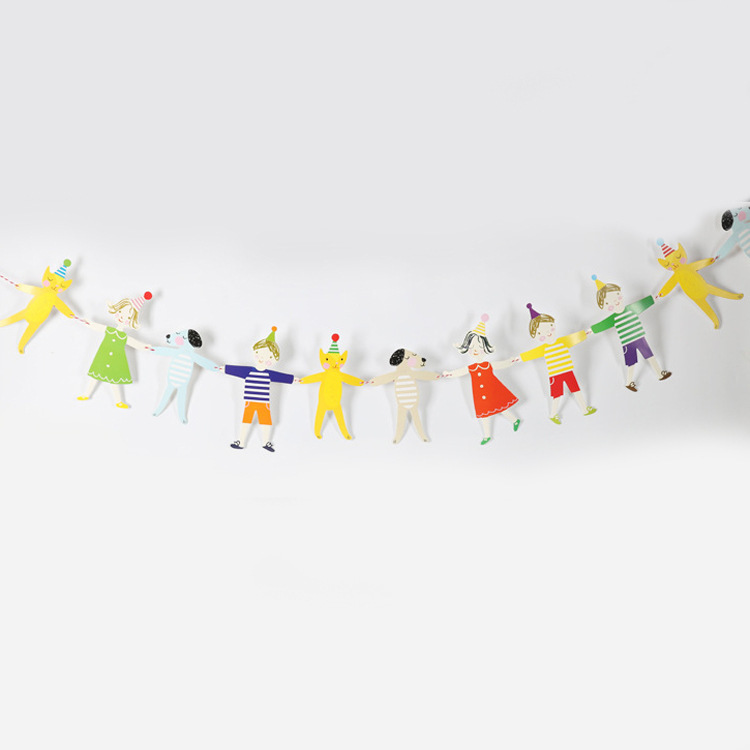 Hand hand to hand flag boy and girl cartoon character hand hand - bar kindergarten party decoration