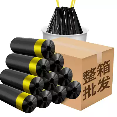 Garbage bag household portable drawstring thick extra thick automatic closing kitchen garbage large black plastic bag