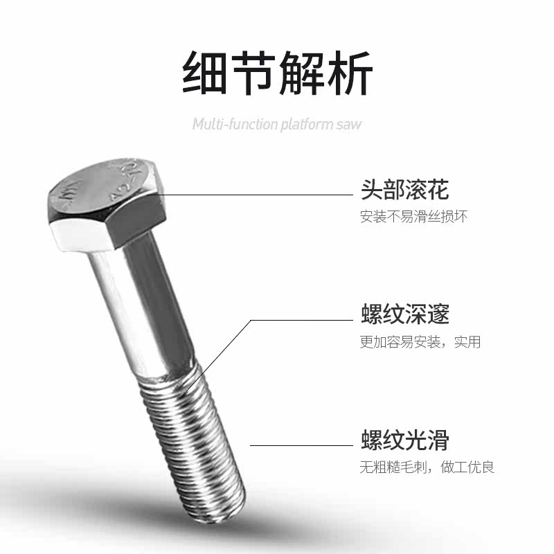 Stainless steel Outer hexagonal screw semi-tooth M16 semi-threaded 304 bolt semi-buckle screw