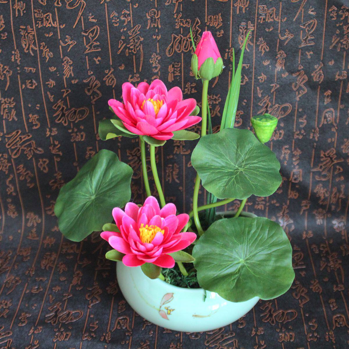 Lotus decorative flower home furnishing antique art ornaments fake flower TV cabinet bedside table simulation flower for Buddha lotus