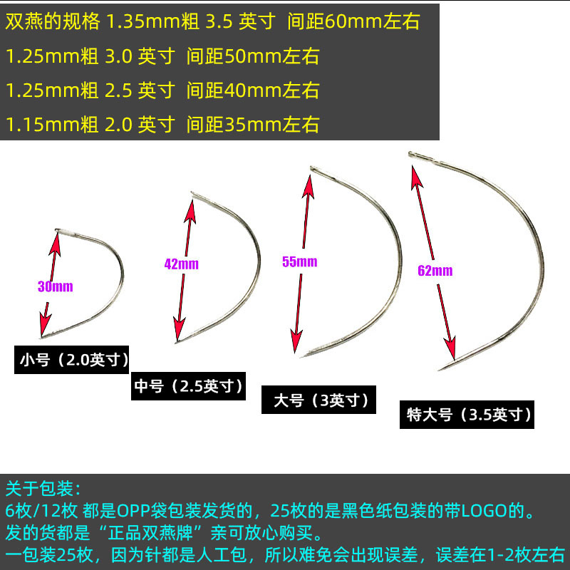 Double swallow small number 2 0 inch curved needle 25 Double swallow medium No. 2 5 inch Bent Needle 25