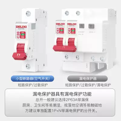 Delixi small circuit breaker 2P63A leak protection package equipped with household power supply air conditioning leakage protection air switch