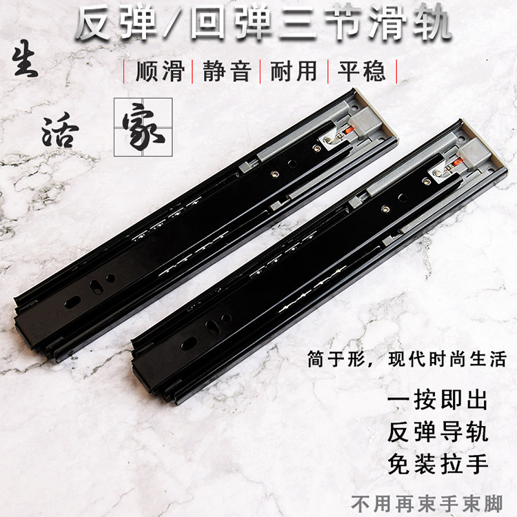 Drawer track Free handle Three-section rebound rail Press-touch drawer slide Side-mounted steel ball rail