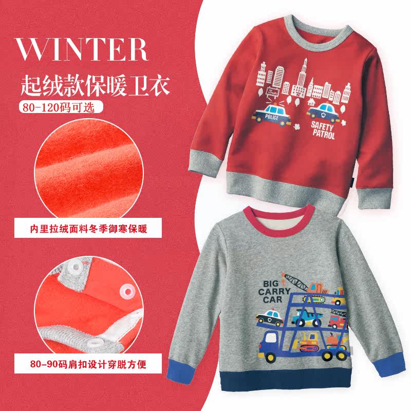 Japan thousand fun home autumn and winter boys thickened flannel cotton T baby pure cotton cartoon car long-sleeved inner jacket