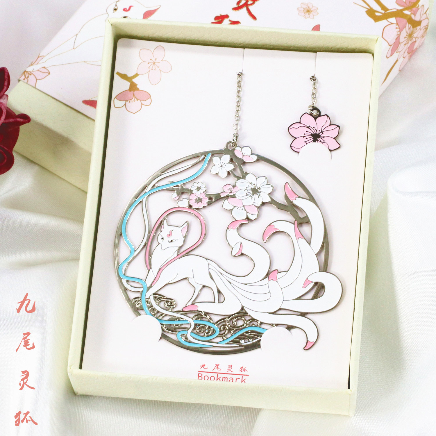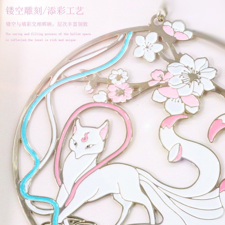 Creative Classical China Wind Jiuwei Lingon Fox Metal Bookmarking Text with small fresh peach blossom white fox Art and art gift ancient wind fox accompanied by the Forbidden City style