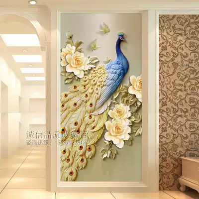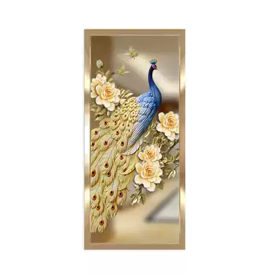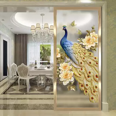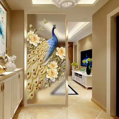 Art glass partition frosted carved porch double-sided transparent painted tempered craft high-end art decorative peacock
