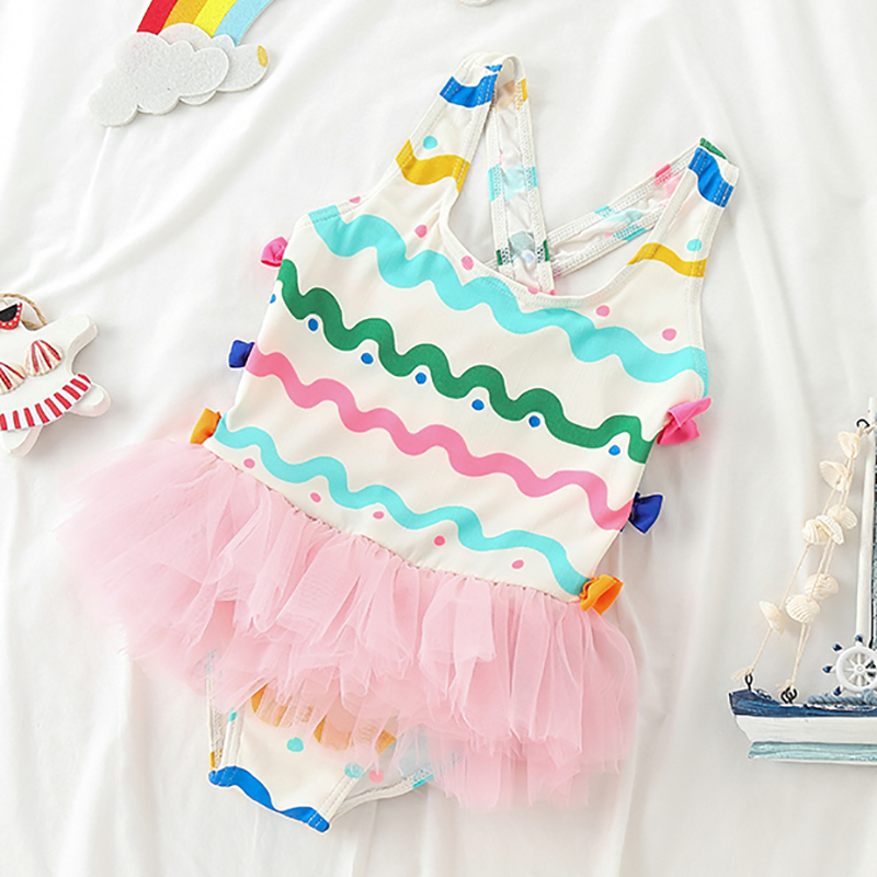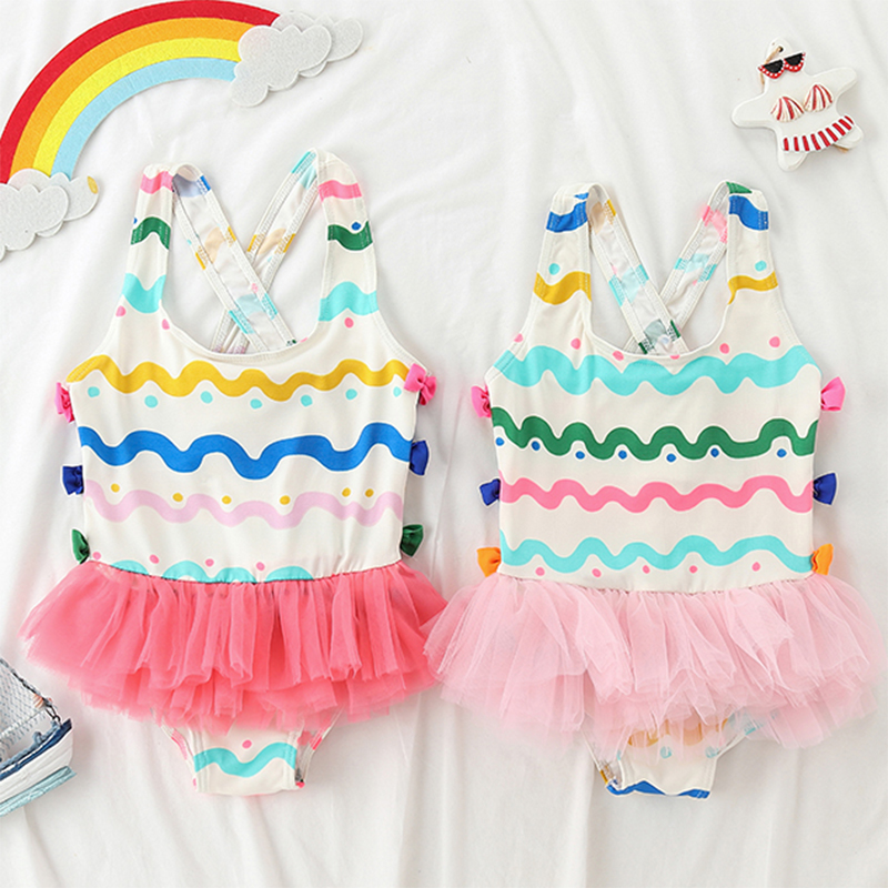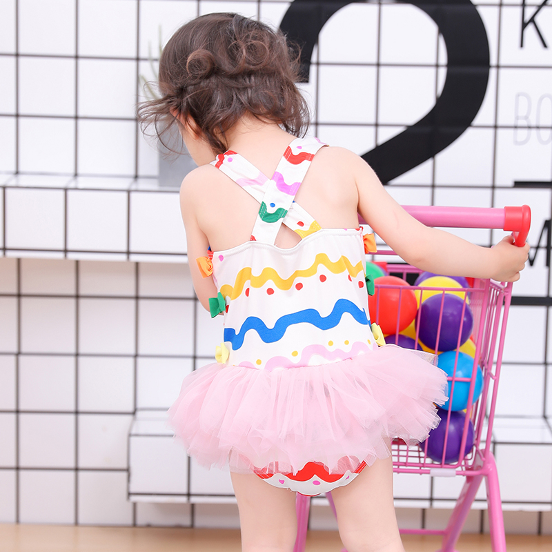 Children's swimsuit baby baby and toddler cute conjunction swimsuit girl Korea lace princess dress swimsuit