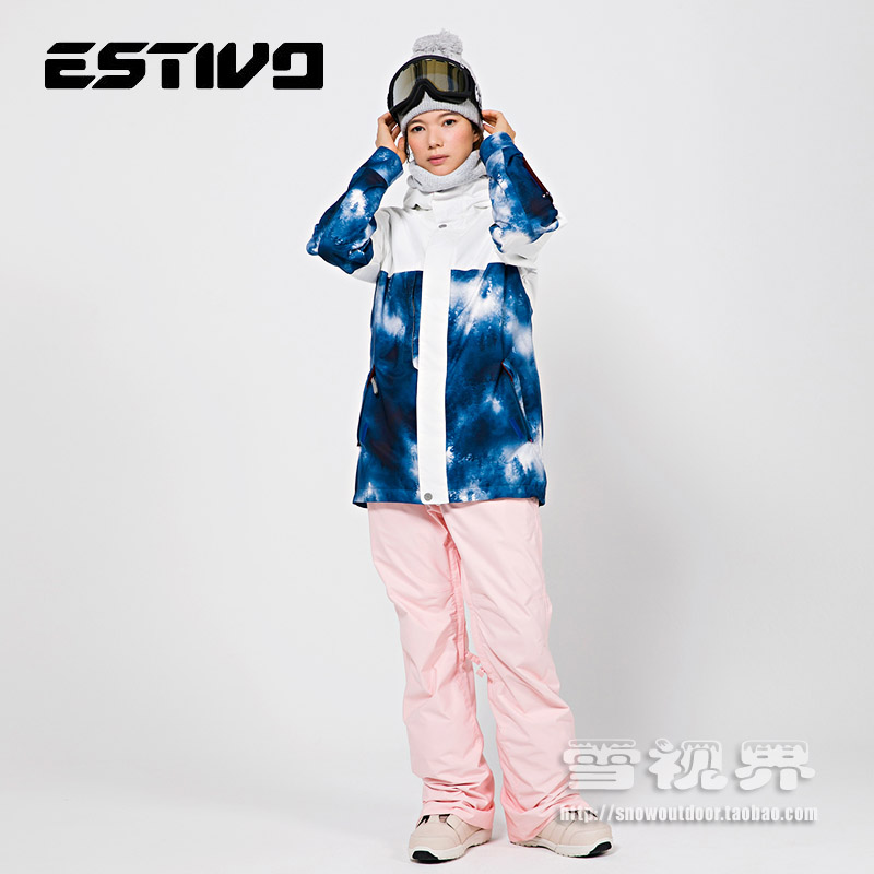 Snow Horizon Japan ESTIVO Ladies Veneer Ski Suit Light Warm Lining 1930 Indigo Print