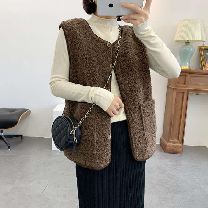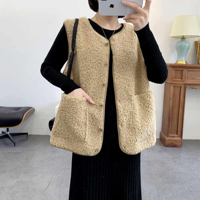 Lamb wool vest vest women's short autumn and winter 2022 new Korean version loose fur one-piece vest vest jacket