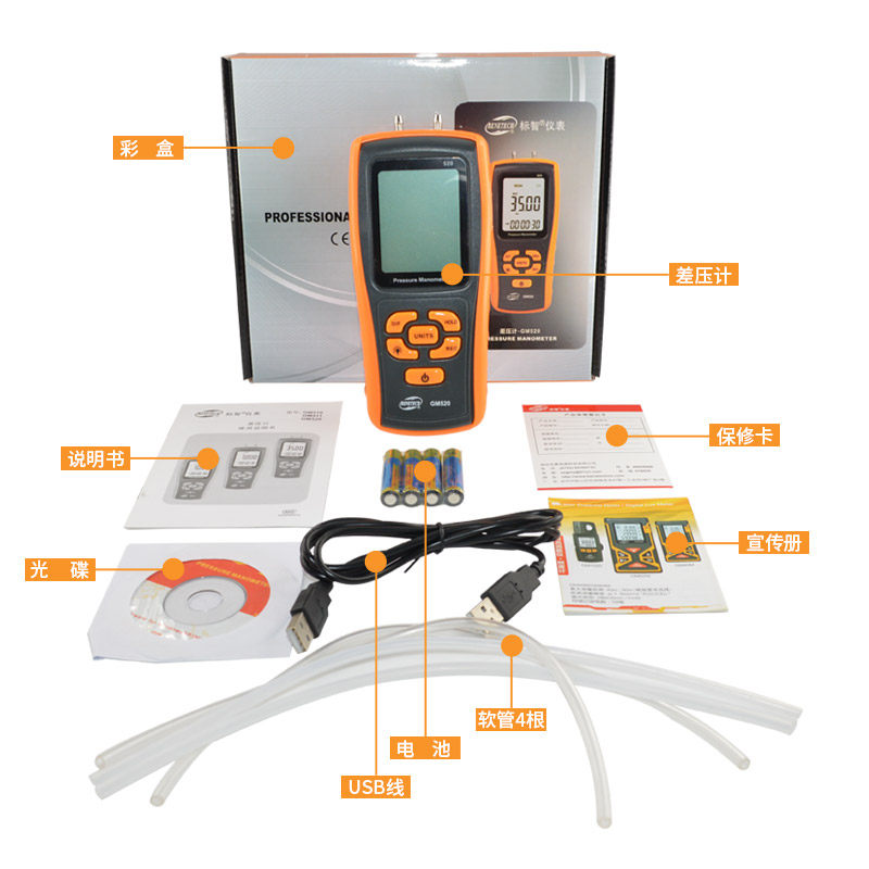 Peuchwise handheld pressure meter differential pressure gauge micro-pressure gauge pressure hydraulic negative pressure detector industrial micro pressure differential meter