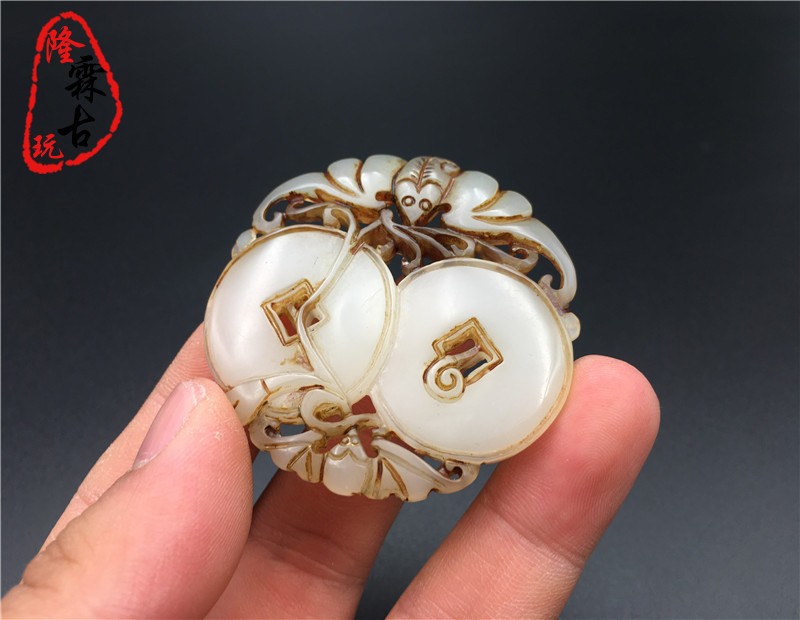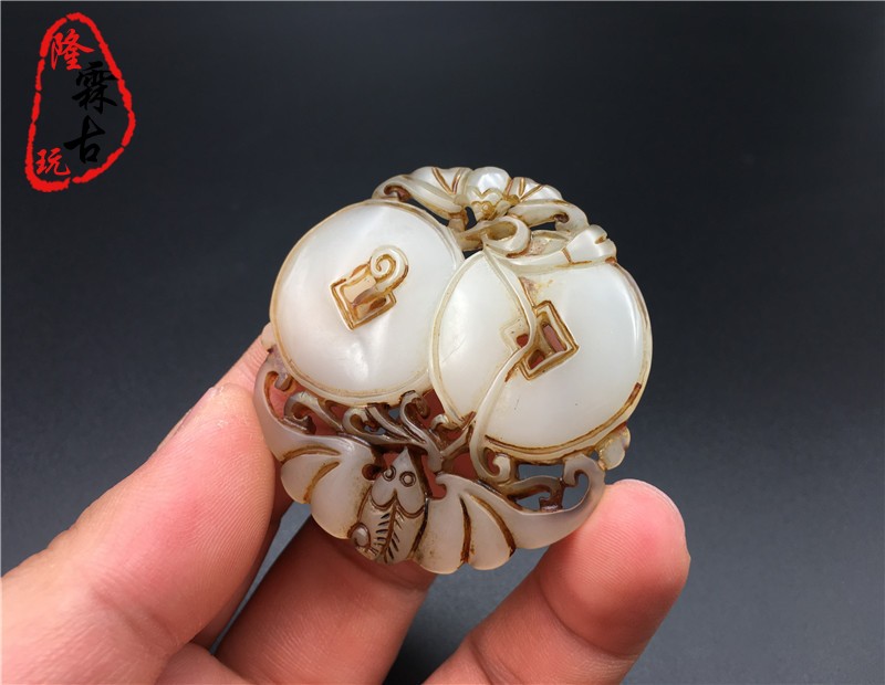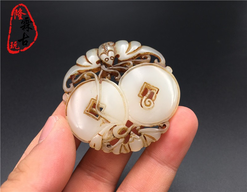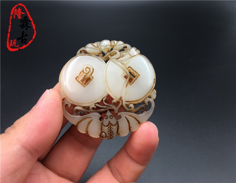 Ancient play Miscellaneous antique Outer Mongolia stock white Yufu in front of eyes The green ring bat sign pendant jade collection pendant jade collection