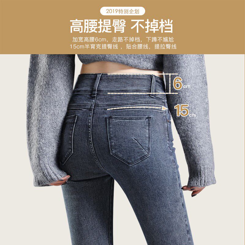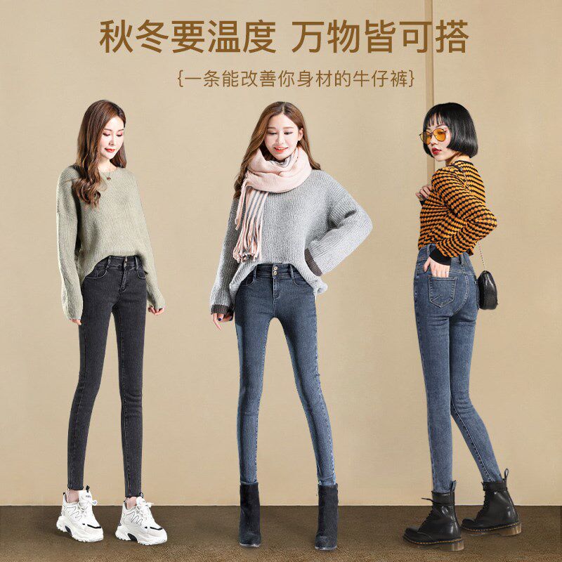 High-waisted jeans women slim slim autumn and winter 2021 new Korean version high tight stretch plus velvet cigarette tube pants