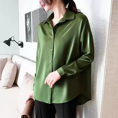JACOOBS avocado green satin shirt women's simulation silk loose oversize design sense niche satin
