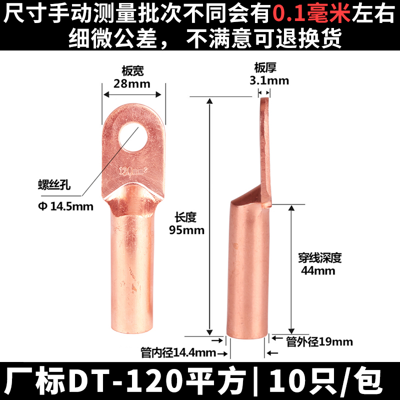 Copper terminal DT-120 square copper connector Cable copper terminal wire lug Copper terminal nose terminal Factory standard Class B