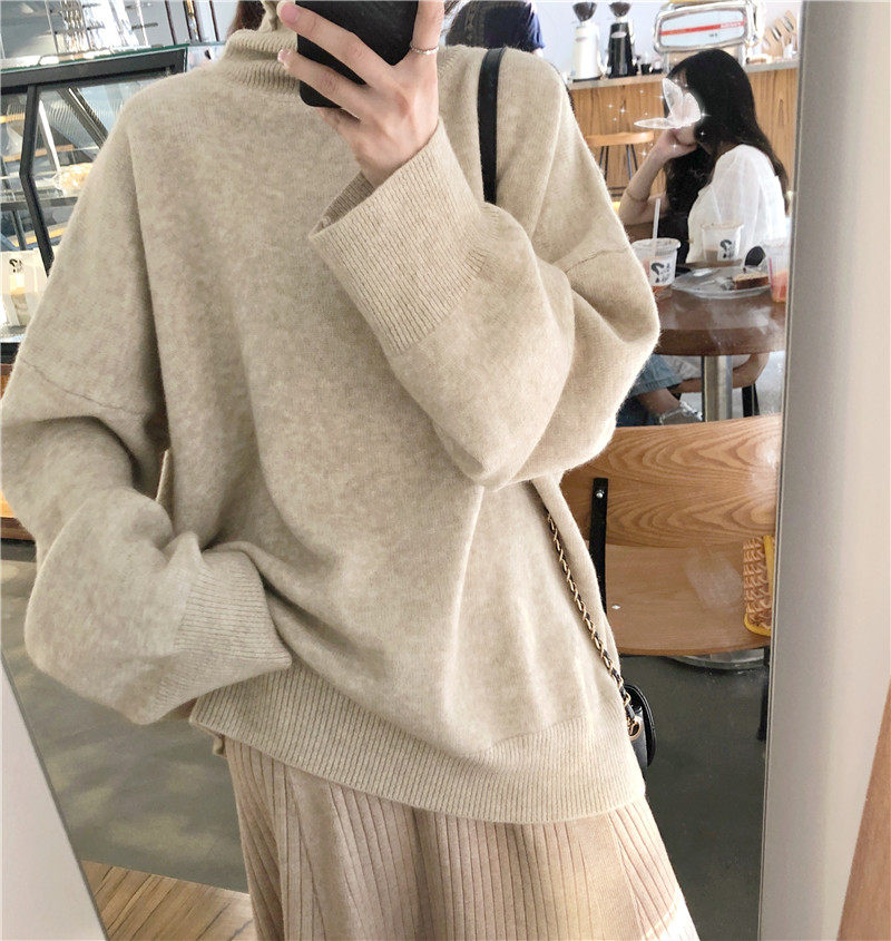 2021 new autumn and winter lazy wind turtleneck sweater women loose outer wear thick Joker apricot bottoming coat