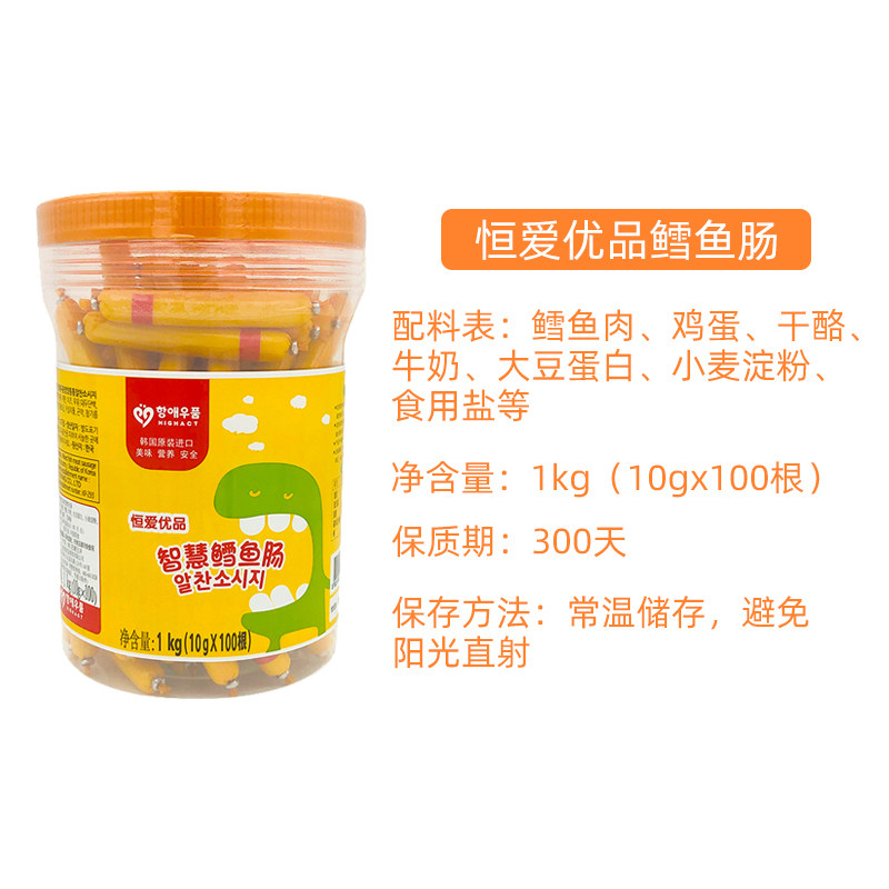 Korea Hengai Premium Deep Sea Cod Sausage 10g * 100 Baby Snack Supplement Cheese Fish Sausage Canned
