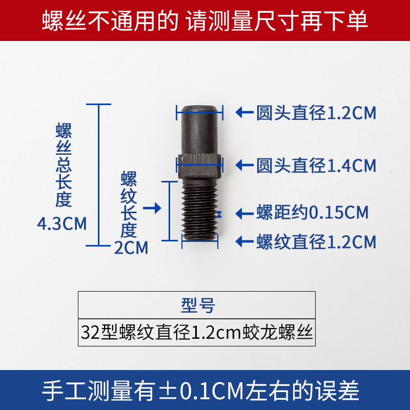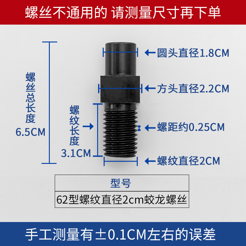 32 screw diameter 1 2CM does not generic 42 type 52 screw diameter 1 6CM does not universal 62 thread diameter 1 8CM does not universal 62 thread diameter 2 0CM