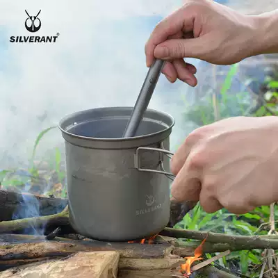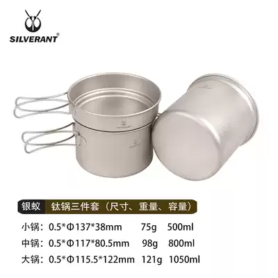Pure titanium set pot Healthy titanium pot three-piece small large-capacity portable outdoor mountaineering camping camping cookware Pure titanium pot