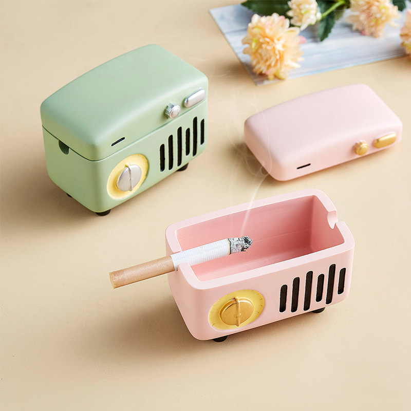 Tobacco Ashtray Retro Light Lavish Anti-Fly Ash With Lid With Home Living Room Cute Cartoon Creative Personality Trend Ins Wind