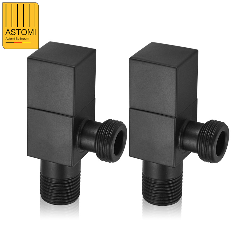 Black square hot and cold triangle valve water heater valve switch household eight-character valve toilet valve all copper thickening and lengthening