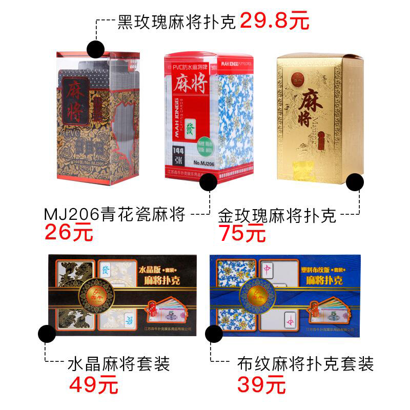 Jinyi narrow version plastic mahjong (send storage bag) Jinyi wide version plastic mahjong (send storage bag) Black rose mahjong poker (send storage bag) Iron box mahjong (lake blue back pattern send bag) Iron box mahjong (Nichijin Doujin white back delivery bag) Iron box mahjong (full of stars black back delivery bag) Iron box mahjong (Nichijin Doujin black back delivery bag) Iron box mahjong (Jinshuanglong back pattern send bag) Plastic black rose mahjong set (send storage bag) Plastic gold rose mahjong set (send storage bag) Cloth mahjong poker set (send storage bag) Crystal Mahjong Set (Send Storage Bag) Jinyi Narrow Edition Plastic Mahjong (Send Storage Bag) + 40 Chips Jinyi Wide Edition Plastic Mahjong (Send Storage Bag) + 40 Chips Black Rose Mahjong Poker (Send Storage Bag) + 40 Chips Iron Box Mahjong (Lake Blue Back Pattern Send Bag) + 40 Chips Iron Box Mahjong (Nichijin Doujin Gold White Back Delivery Bag) + 40 Chips Iron Box Mahjong (Full of Stars Black Back Delivery Bag) + 40 Chips Iron Box Mahjong (Nichijin Doujin Black Back Delivery Bag) + 40 Chips Iron Box Mahjong (Nichijin Doujin Black Back Delivery Bag) + 40 Chips Iron Box Mahjong (Golden Double Dragon Back Pattern Send Bag)+ 40 chips