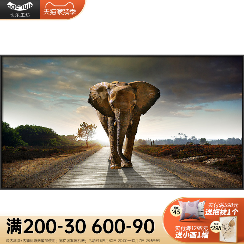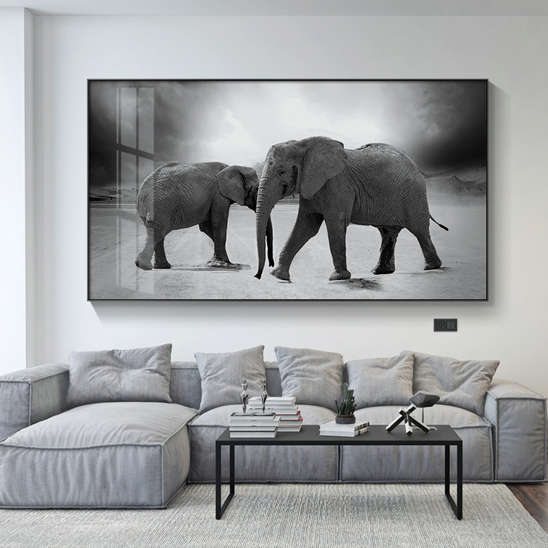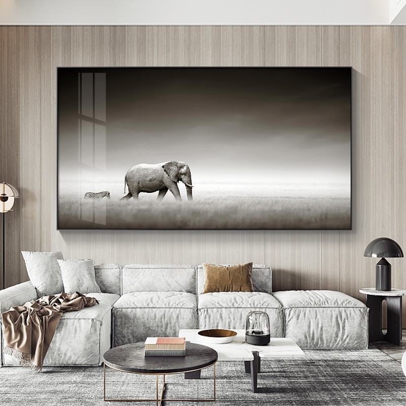 Modern minimalist living room sofa atmospheric decoration painting nature art painting black and white elephant animal large Nordic painting