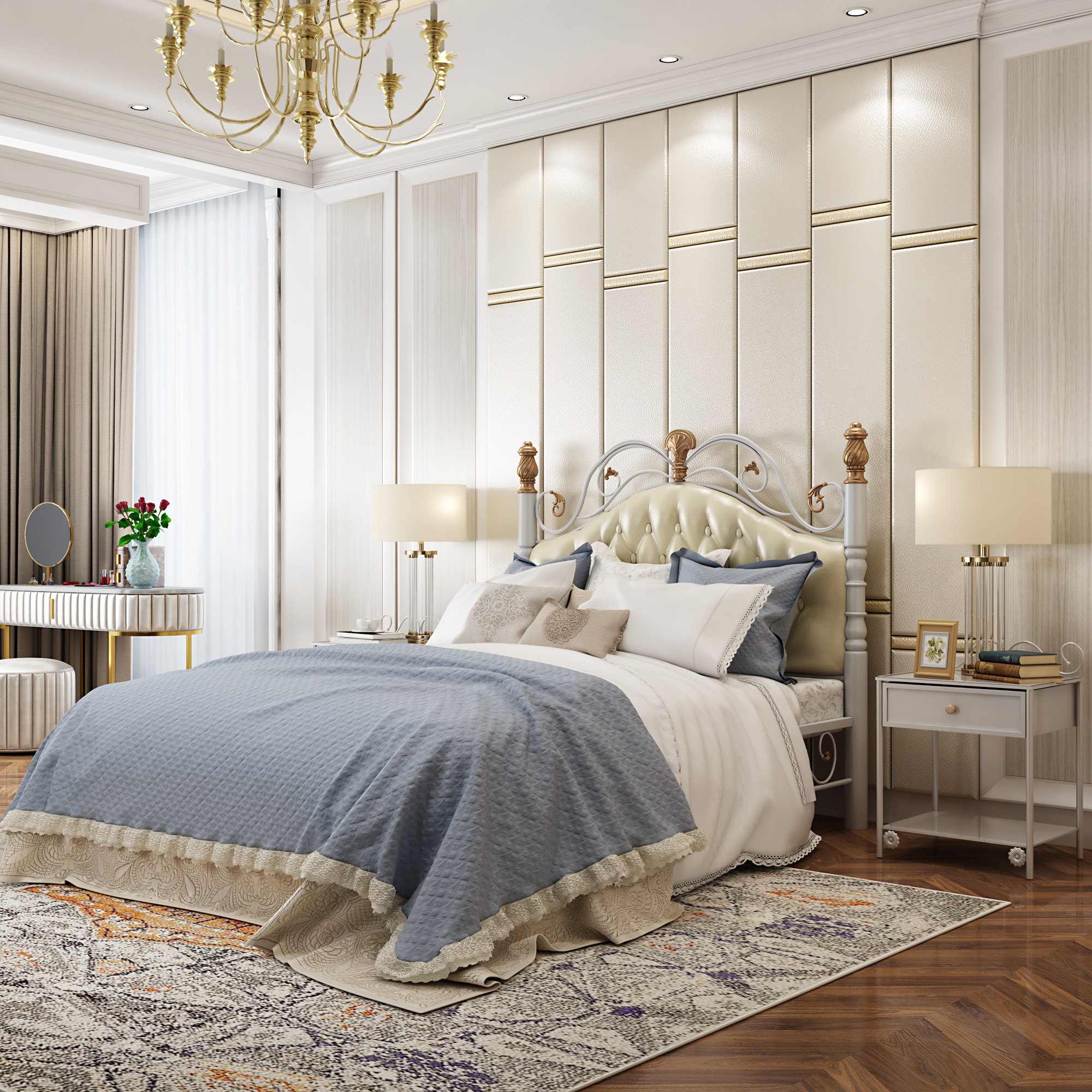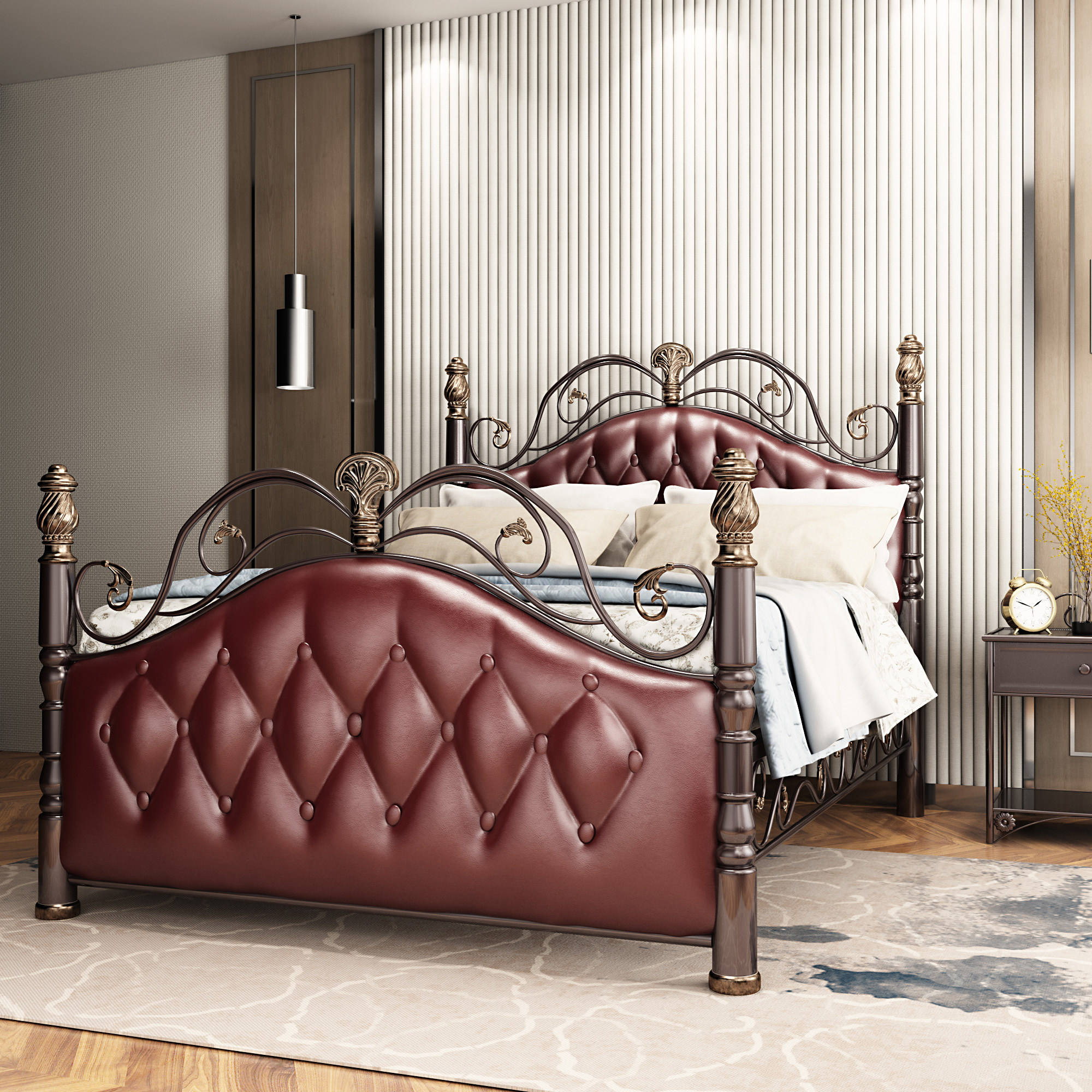 Xin Lihao European-style wrought iron retro princess bed double bed light luxury iron bed frame villa high-end villa custom bed 1 8 meters