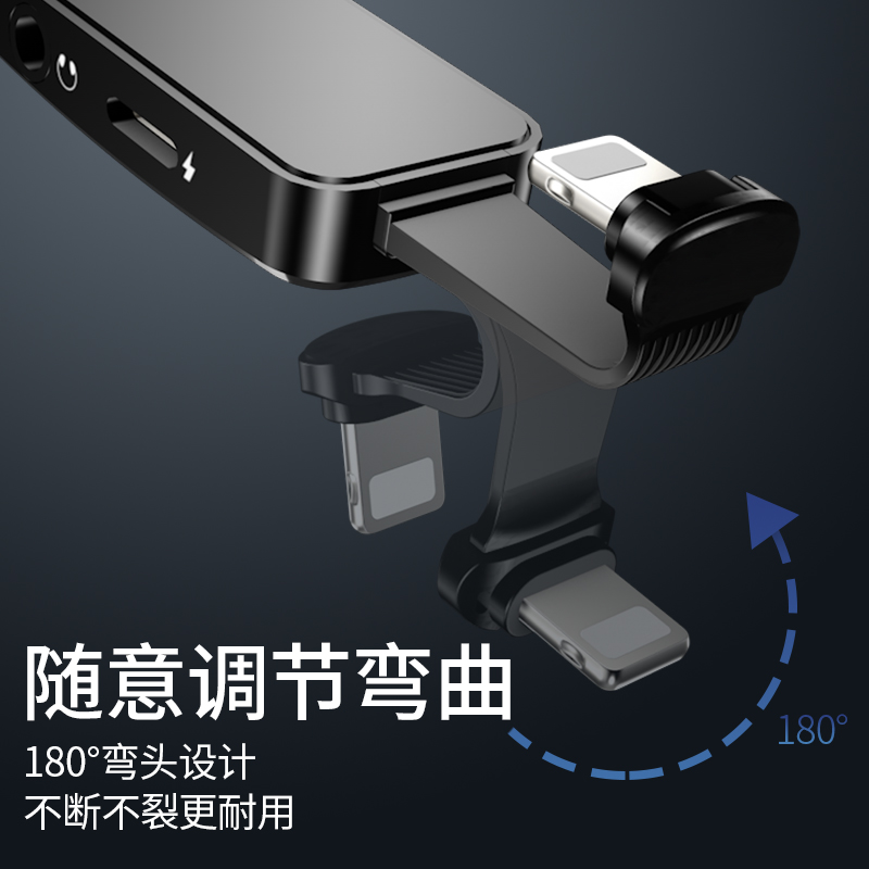 (lightning 3 5mm) supports charging listening songs★high-definition sound quality charging speed up 99% bends black Double lightning] Upgrade decoding three chips☆true