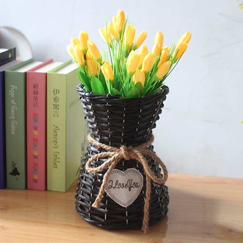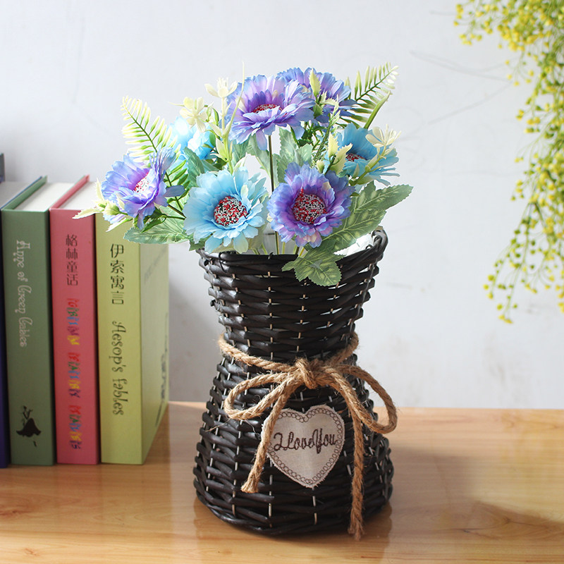Flower basket pastoral ornaments Living room flower arrangement creative handmade flower basket fresh dried flowers Pastoral woven flower basket hand woven
