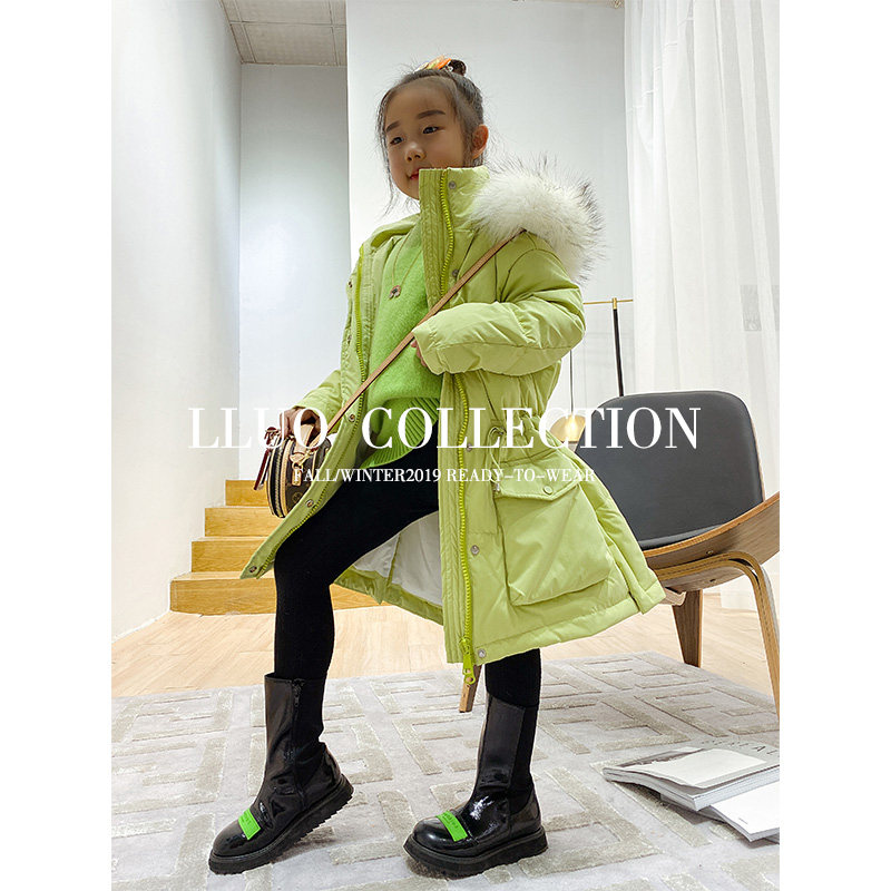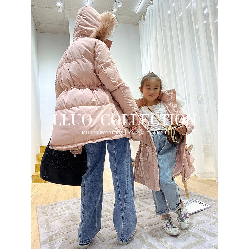 Clearance pick up leaks Fried big fox fur 80 velvet ~ parent-child autumn and winter down jacket women's mid-length version waist thick coat