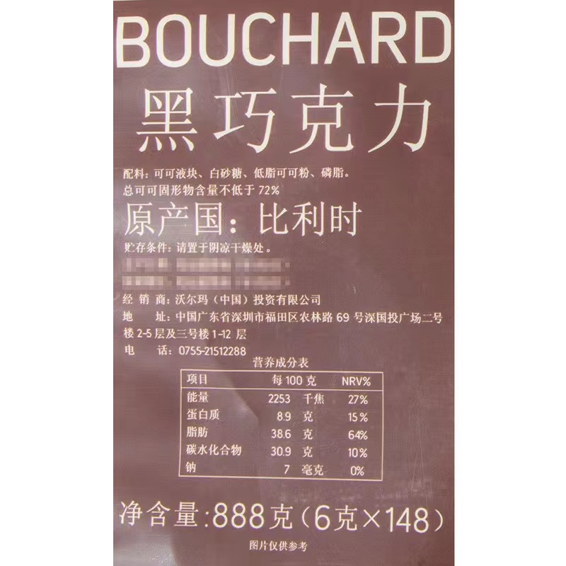 Sam Shop Bouchard Belgium imports Buxia Black Chocolate 888g Supermarket snacks