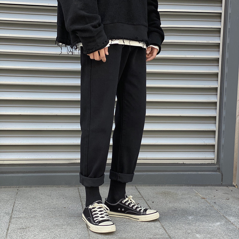 Pants with rhubarb boots and Martin boots American street high street men's black jeans straight casual daddy pants