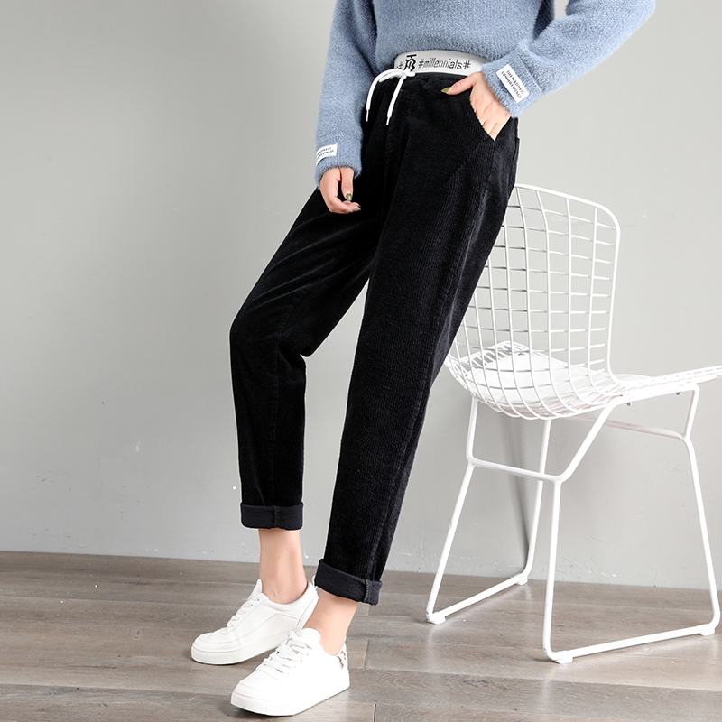Fashion brand autumn and winter new corduroy pants women's straight tube Harem pants loose and versatile high-waisted casual pants Dad pants